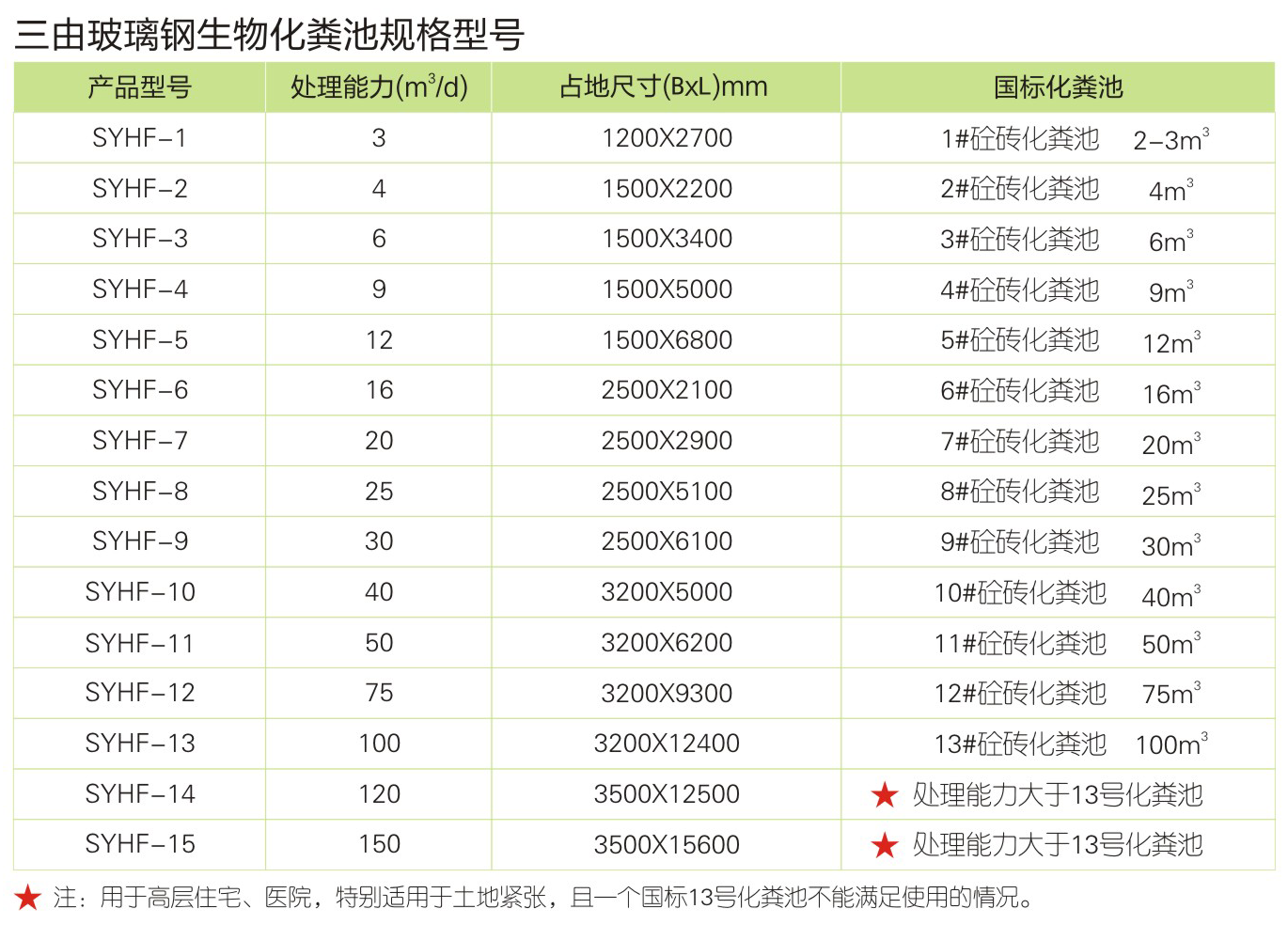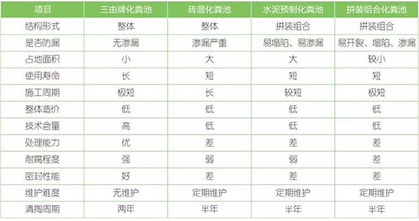 三由玻璃鋼生物化糞池與各種化糞池經(jīng)濟(jì)技術(shù)指標(biāo)對(duì)比