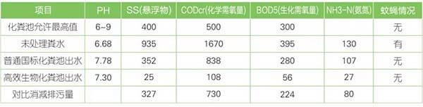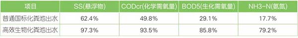 三由玻璃鋼生物化糞池與普通國(guó)標(biāo)化糞池的污染去除率對(duì)比表(單位mg/L)